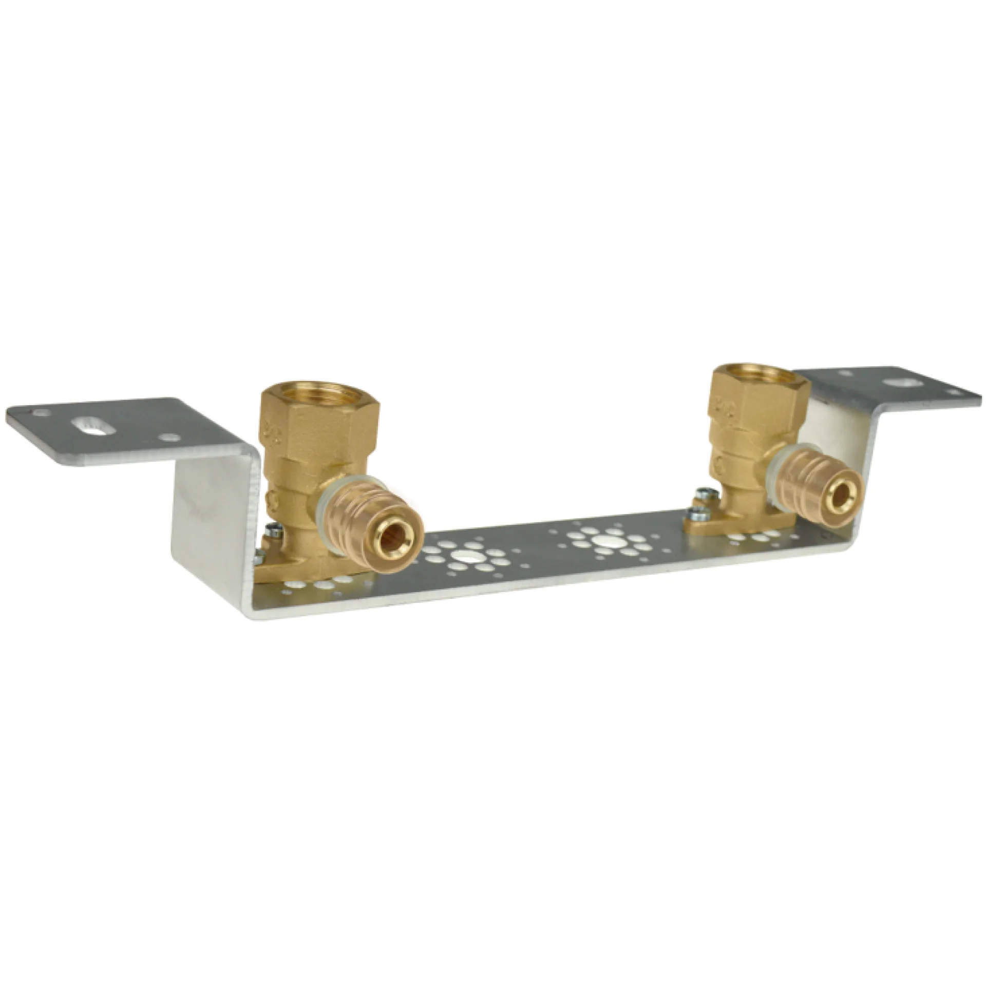 Zestaw składa się z dwóch kolan ustalonych zaprasowywanych WL 16x1/2 GW przymocowanych za pomocą śrub M8 do płytki montażowej.
